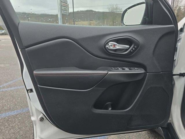 This pristine, one-owner, accident-free 2022 Jeep Cherokee Trailhawk in Bright White Clearcoat is a rugged, trail-ready midsize SUV that combines serious off-road capability with premium comfort and modern tech in a clean, low-maintenance package. It features a potent 3.2L V6 engine delivering 271 horsepower and 239 lb-ft of torque for confident power on- or off-road, paired with a smooth 9-speed 948TE automatic transmission and Jeep's proven 4WD system with Selec-Terrain traction management, skid plates, red tow hooks, and Trailhawk-specific suspension for tackling rocks, mud, sand, or snow. A fresh oil change has been completed, and it rolls on Trailhawk-exclusive wheels that enhance its aggressive stance, complemented by the bright white finish for a sharp, ready-for-anything look.The premium cabin offers premium leather-trimmed bucket seats with ventilated front seats, heated front seats, power 8-way adjustable front passenger seat with power passenger lumbar adjust, radio/driver seat/exterior mirrors memory, and upscale touches from the Comfort/Convenience Group and Premium Leather Package including hands-free power liftgate, universal garage door opener, security alarm, auto-dimming rear-view mirror, and exterior mirrors w/memory. Advanced connectivity shines through with an 8.4" touchscreen display featuring Uconnect 4, Apple CarPlay/Android Auto, Quick Order Package 27E, and thoughtful details that create a refined, driver-focused environment ideal for daily drives or weekend escapes.This loaded Trailhawk combines Jeep's legendary off-road prowess, strong safety features, and versatile performance in a clean, low-maintenance midsize SUV with generous cargo space (up to 54.9 cu ft with seats folded), towing capacity up to around 4,500 lbs when properly equipped, and the bold Bright White Clearcoat finish that exudes clean, capable style. It's an outstanding choice for adventurers or anyone seeking a feature-rich, family-friendly SUV with ventilated/heated leather comfort, premium tech, all-terrain readiness, and the assurance of one-owner history ready for trails, towing, or everyday driving with confidence and premium appeal.