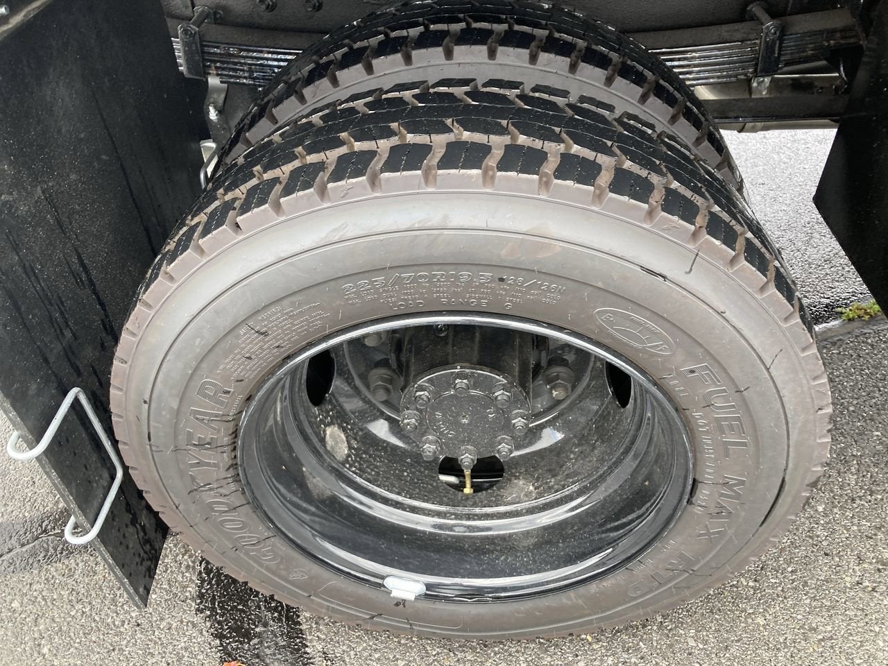- Tires, rear 225/70R19.5G traction blackwall Goodyear Max Axle Load: 15,000 lb.