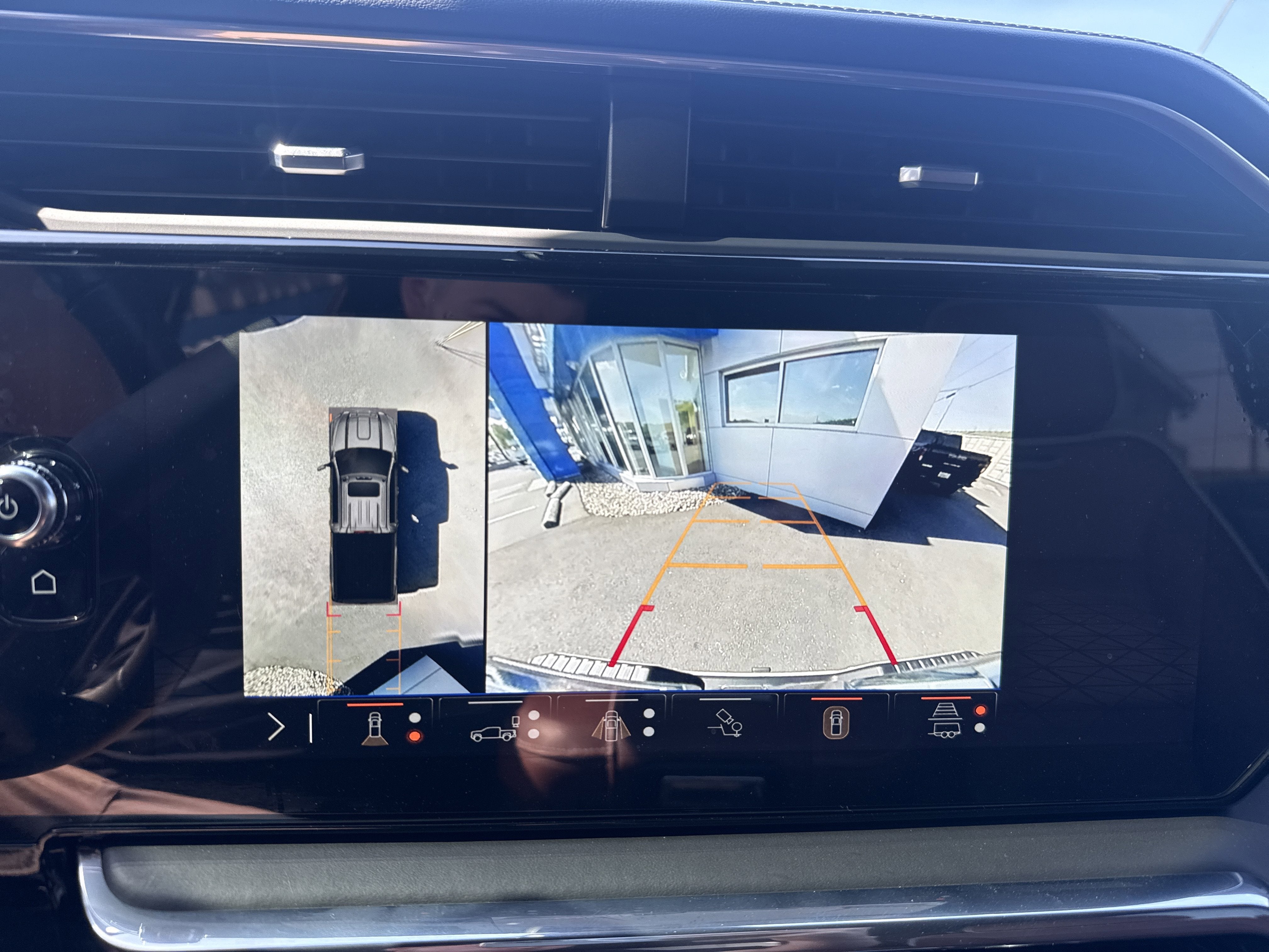 - Allows driver to see inside the cargo bed on the infotainment display to help with 5th wheel or gooseneck hitching and to check cargo