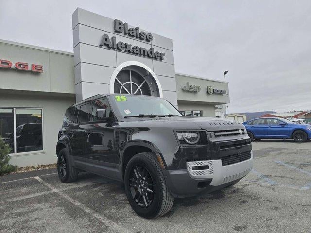 This pristine, one-owner, accident-free 2025 Land Rover Defender 110 S in sophisticated black is a premium, go-anywhere midsize SUV that combines iconic rugged design, refined luxury, and exceptional all-weather capability in a clean, low-maintenance package. It features a responsive 2.0L I4 DI Turbocharged engine delivering strong performance and efficiency around 18 city/23 highway/20 combined MPG for confident acceleration and composed cruising, paired with an 8-speed automatic transmission and intelligent AWD system that provides superior traction on pavement, trails, or in adverse conditions while balancing capability with respectable fuel economy for its class. A fresh oil change has been completed, ensuring the powertrain operates at peak efficiency and reliability from the first mile.The Cold Climate Package enhances year-round comfort with heated front seats, heated washer jets, heated windscreen, and headlight power wash for clear visibility in harsh weather, while the power moonroof and 19" Gloss Sparkle Silver Style 6010 wheels add an open, upscale feel and bold presence. Premium touches include memory seat settings, power driver seat, power steering, steering wheel mounted audio controls, auto high-beam headlights, front fog lights, and navigation system: Connected Navigation PIVI Pro for seamless routing and connectivity.This loaded Defender 110 S combines Land Rover's legendary off-road prowess, advanced safety features, and standout refinement in a versatile three-door SUV with generous interior space, impressive towing capacity up to around 7,716 lbs when properly equipped, and the timeless black finish that exudes understated strength and premium sophistication. It's an outstanding choice for adventurers or anyone seeking a capable, feature-rich SUV with heated comfort, panoramic moonroof views, all-wheel-drive confidence, and the assurance of one-owner history ready for trails, city streets, or long journeys with bold style and proven dependability.